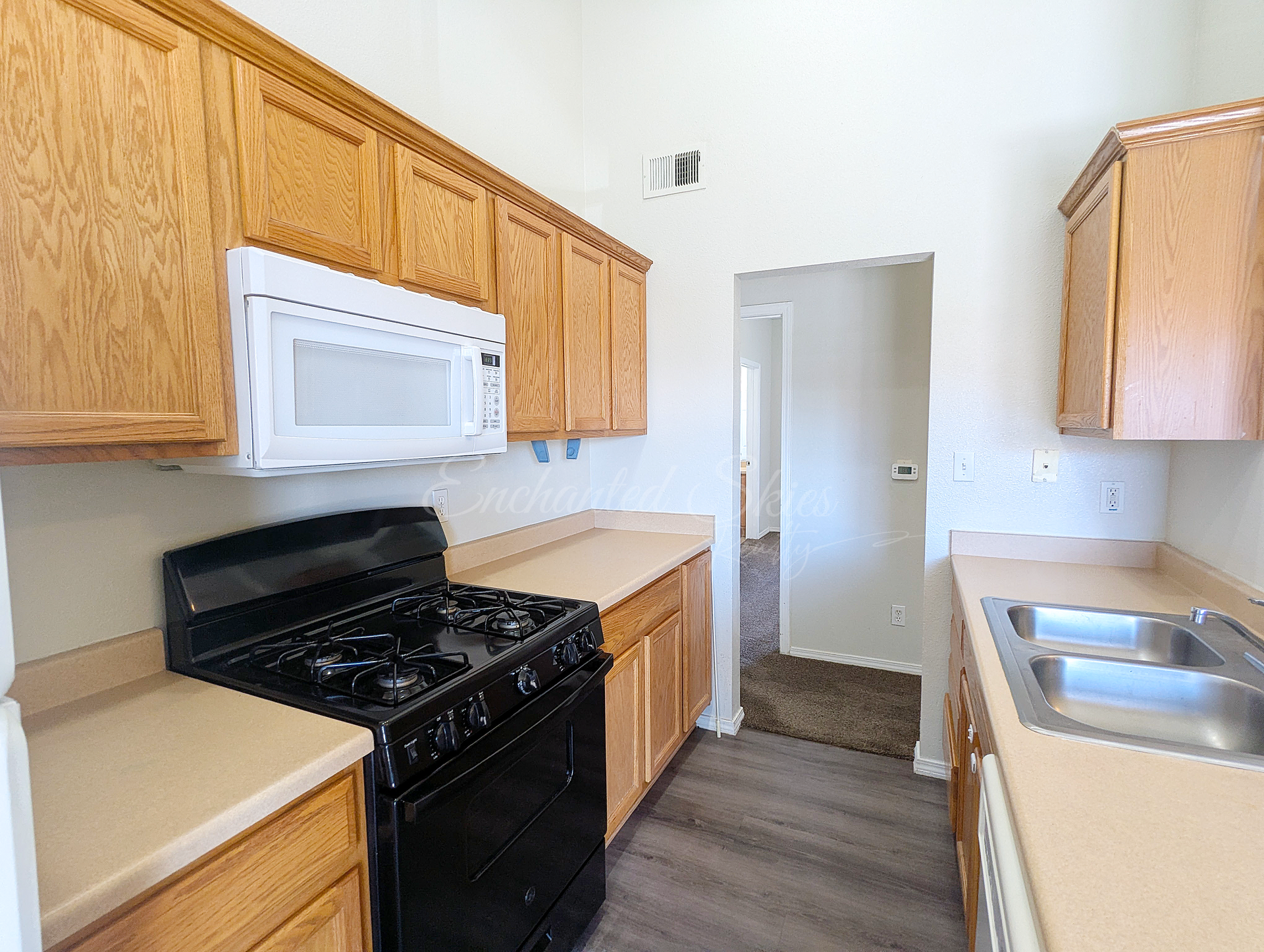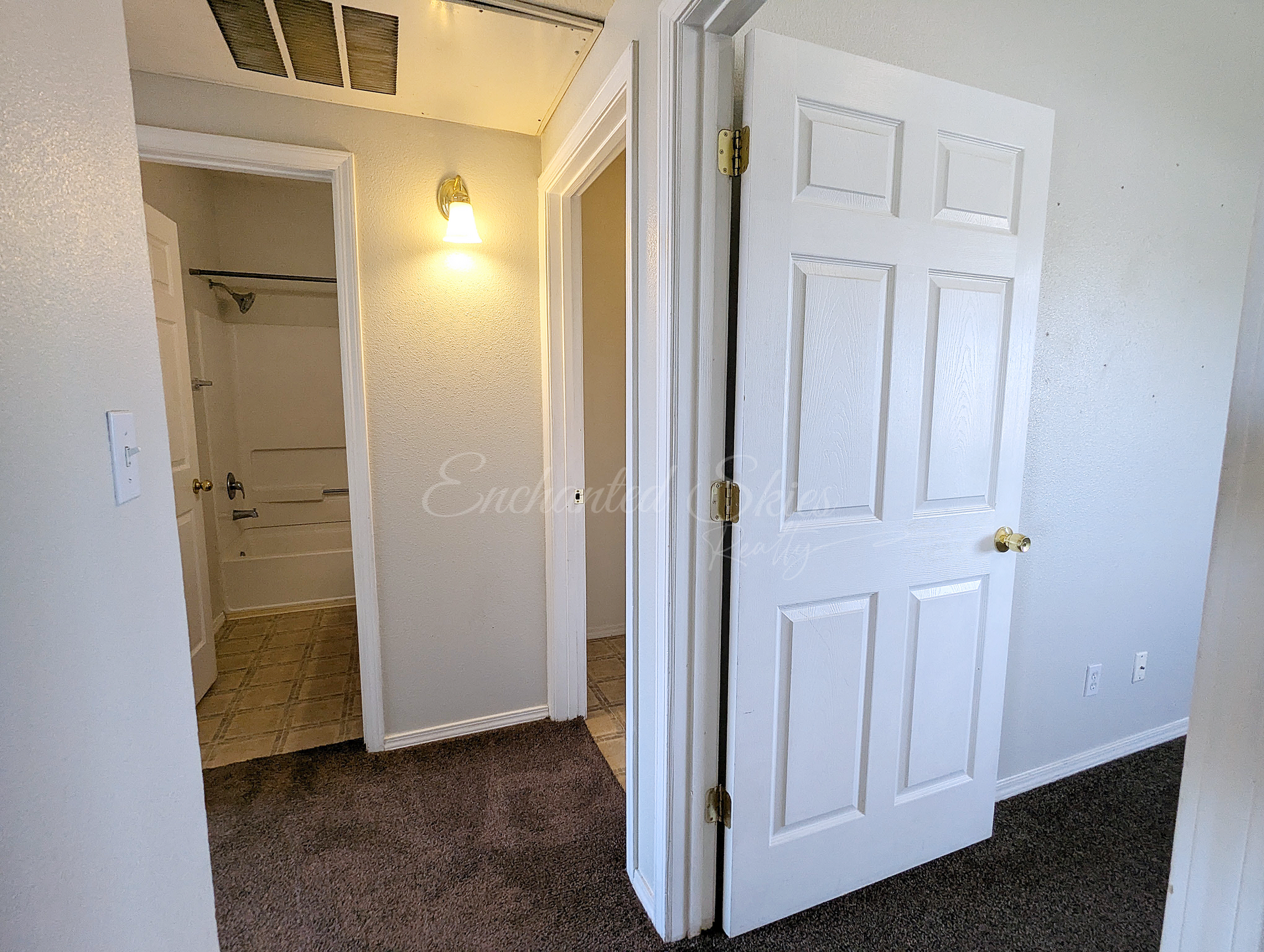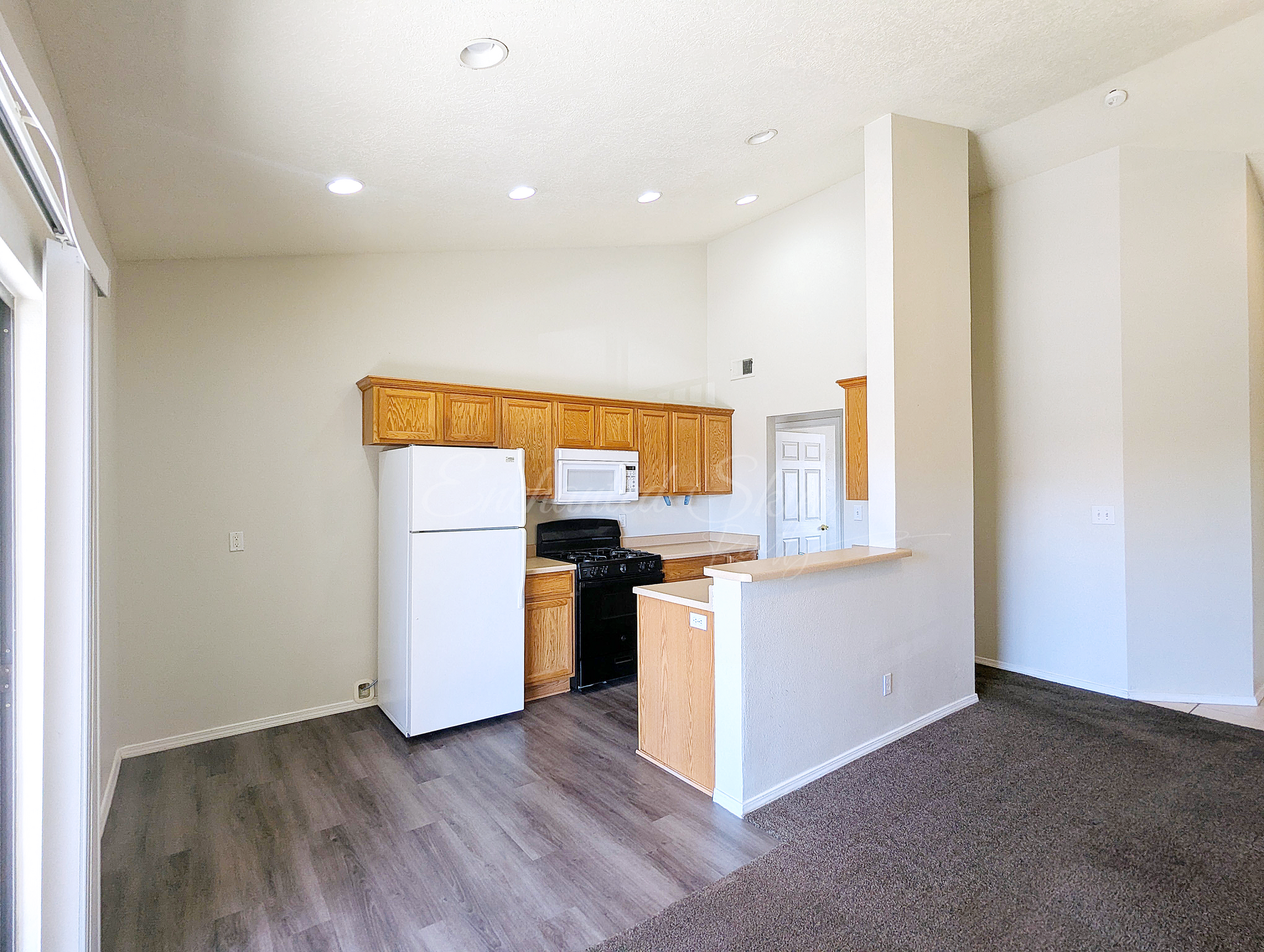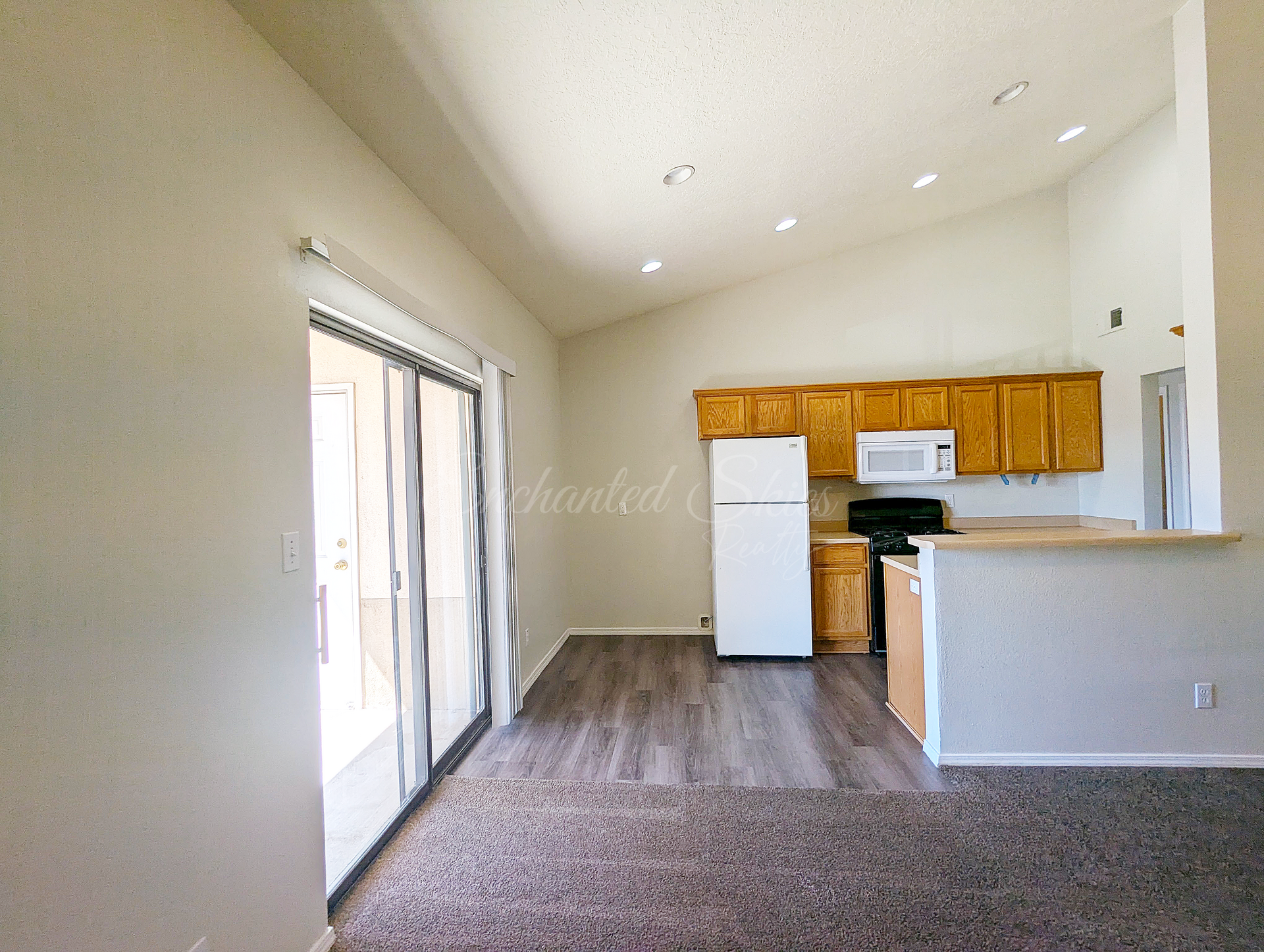 Has modern pant and carpet looks updated and not only feels spacious but is clean and ready for someone to call it home.