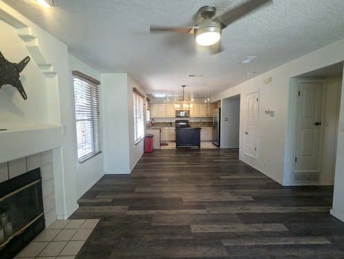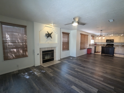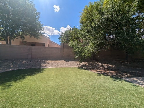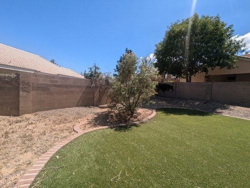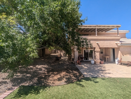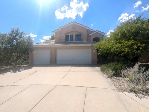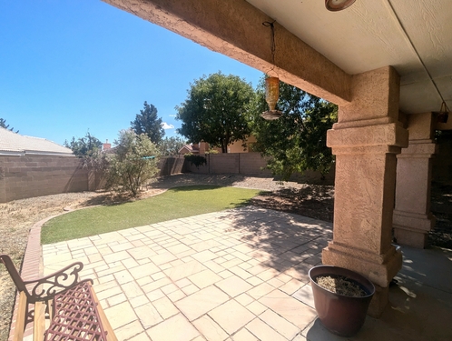 This spacious three-bedroom residence is situated at the center of a cul-de-sac on an expansive lot in Northwest Albuquerque. The home features two inviting living areas and an open kitchen with an island that seamlessly connects to the family room. The large master suite includes a private balcony, while the beautifully maintained backyard, with year-round greenery provided by astro turf, offers a spacious covered patio and additional amenities. This home also includes a large 3-car garage.