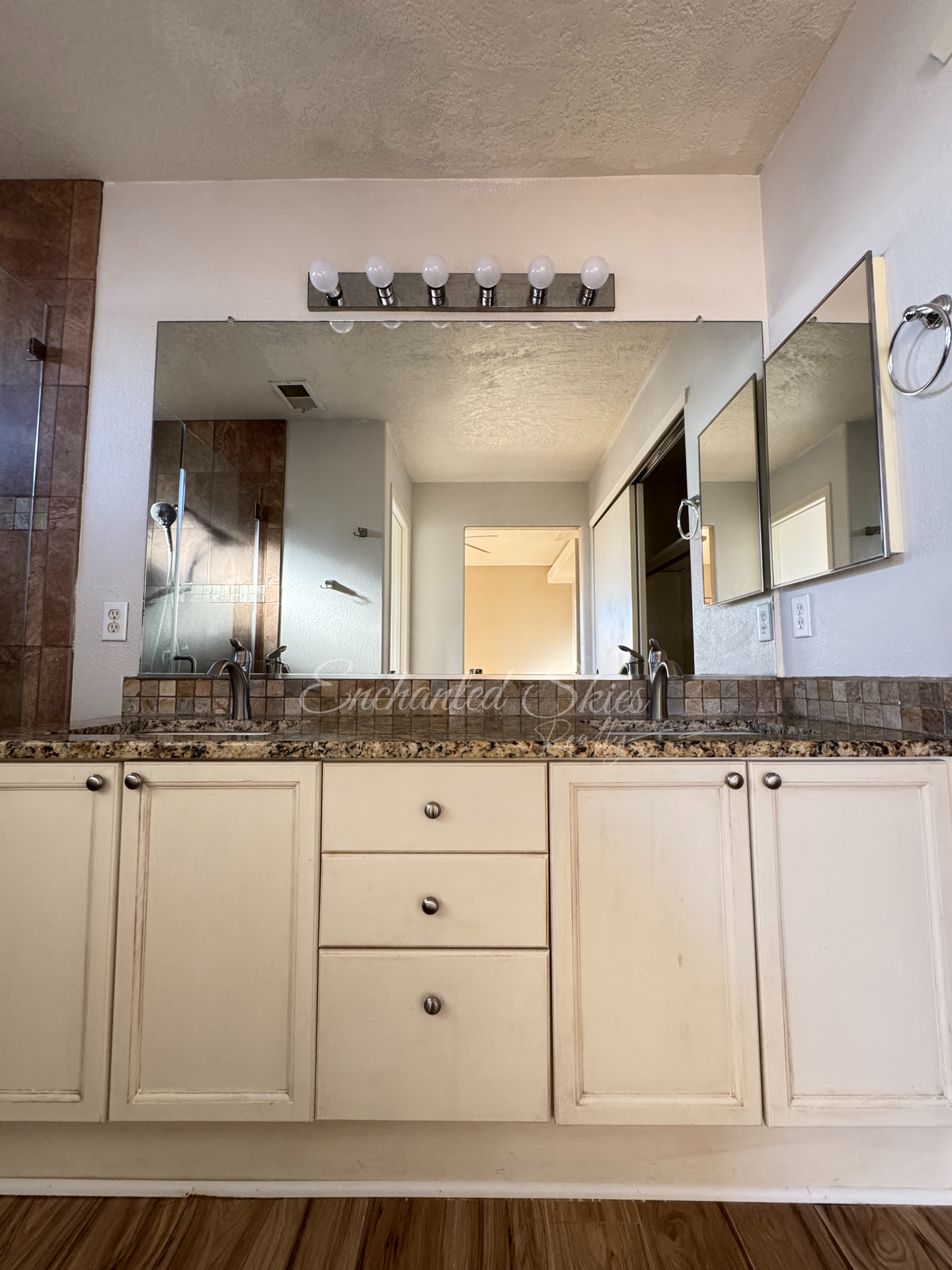 The main-floor primary suite offers a private retreat with a spa-inspired bathroom featuring a spacious sit-down tiled shower and chic his-and-hers sinks allowing you to unwind in peace after a long day. Upstairs, three versatile bedrooms await, perfect for guest rooms, home offices, or nurseries, each providing quiet seclusion from the main living areas.